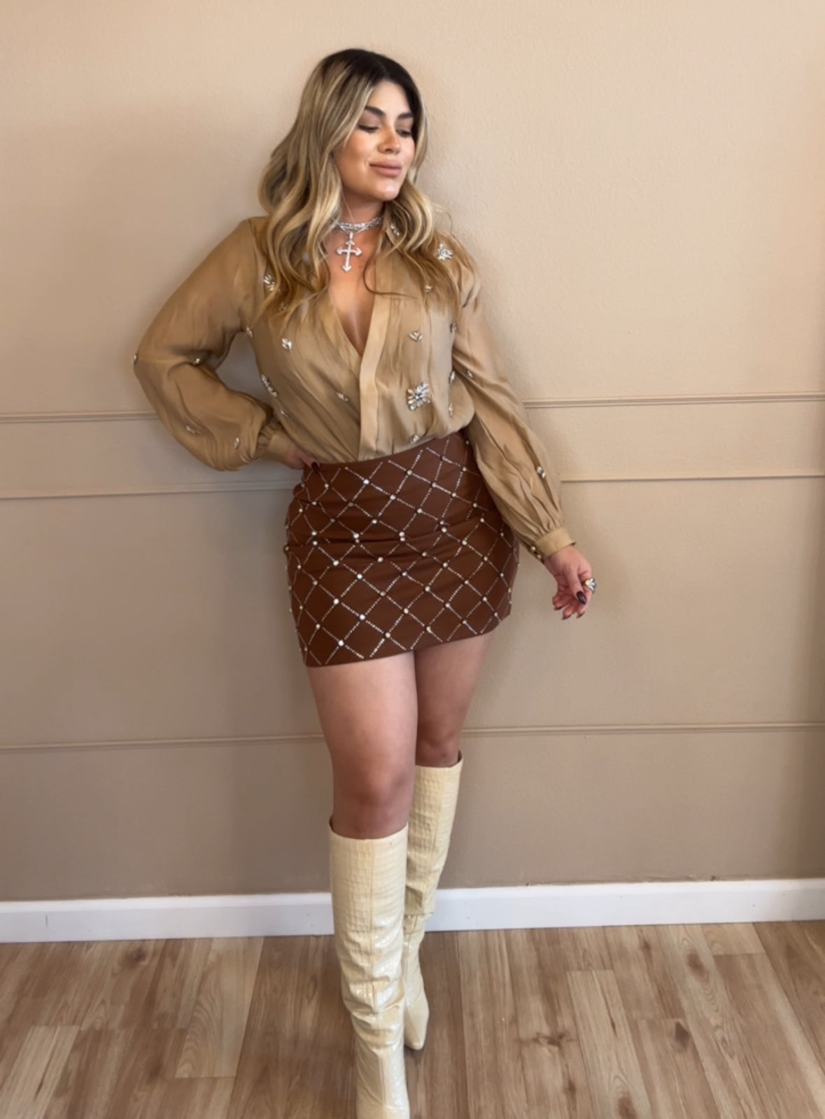 Mocha Rhinestones Mini Skirt